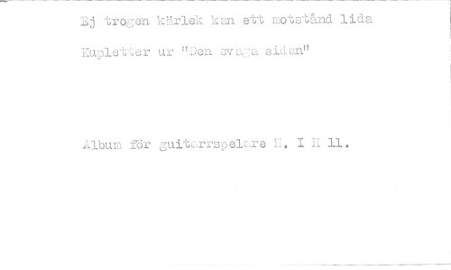 //// Ej trogen kärlek kan ett motstånd lida Kupletter ur "Den sva sidan» //// Album för guit=spelare E. 1 TA 11. ////
