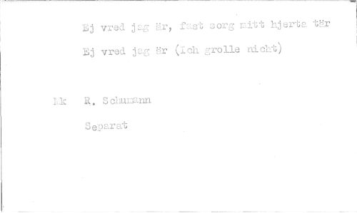 //// Ej vred jag är, fast sorg mitt hjerta tär Ej vred jag 'ör (Ich grolle nicht) //// Lk R. SchumIsmn //// Separat ////