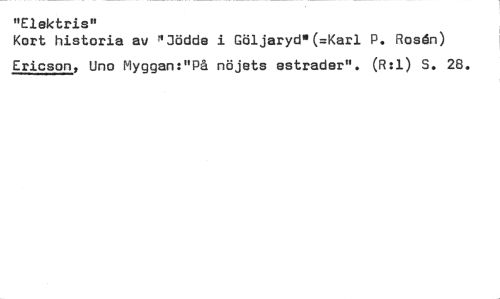//// "Elektris" //// Kort historia av t'Jödde i Göljaryd"(=Karl P. Rosdn) //// Ericson, Uno Myggan:"På nöjets estrader". (R:1) S. 28. ////
