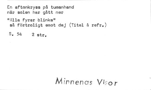 //// En aftonkryss på tumanhand när solen har gått ner //// "Alla fyrar blinka" //// så förtroligt emot dej (Titel & raft.) //// 6. 54 2 strö //// Mirnenas Visor ////