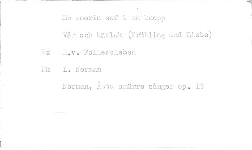 //// En ,z,:morin sof i en knopp //// Vår och kärlek (2rUbling und Liebe) E.v. rollersleben //// hk L. Norman //// Norman, Åtta smärre sånger op. 13 ////