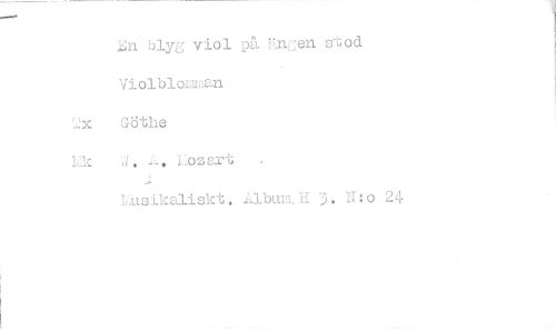 //// 1Jri blyg viol på ngen stod Violblonman //// bc Göthe //// 12k W. A. Lozart //// Musikaliskt. Album.H 3. N:o 24 ////