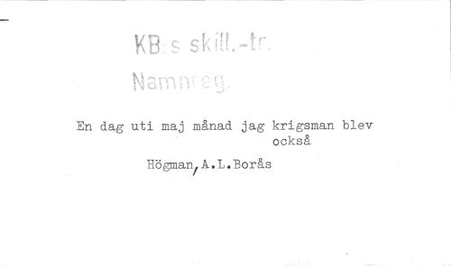 //// KBM E sk U.-tr //// N Ci //// En dag uti maj månad jag krigsman blev //// också //// Högman/A.L.Borås ////