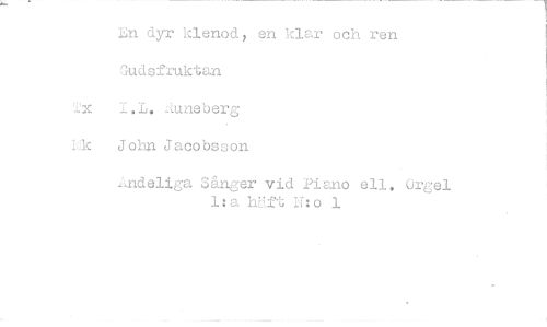 //// -.On dyr klenod, en klar och ren Gudsfruktan //// Jx I.L. Auneberg //// Lk John Jacobsson //// andeliga Sånger vid Piano ell. Orgel 1:a hUft H:o 1 ////