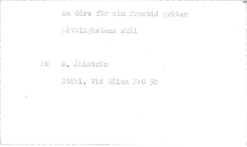 //// -.1.;n dåre för sin framtid :-Tåter Ilttlighetens skål //// kk 0. Åhlström //// StåDl, Vid Bålen U:0 50 ////