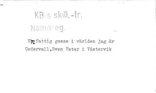 //// -KB: s //// Namn_eg. //// EInfattig gosse i världen jag är Cedervall,Sven Peter i Västervik ////