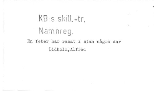 //// KB: s skilt.-tr. //// Namnrecj. //// En feber har rasat i stan några dar Lidholm,Alfred ////