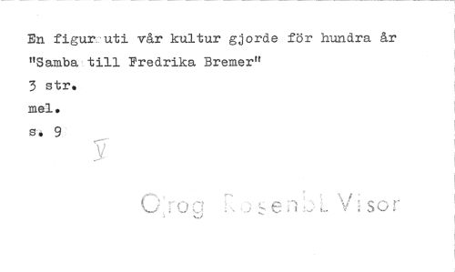 //// En figur:xti vår kultur gjorde för hundra år "Samba. till Fredrika Bremer" //// 3 str. //// med. s, 9 //// ' ////