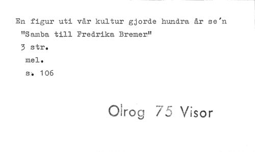 //// En figur uti vår kultur gjorde hundra år se'n "Samba till Fredrika Bremer" //// 3 str. //// nie 1. //// 106 //// Oirog 75 Visor ////