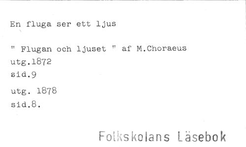 //// En fluga ser ett ljus //// " Flugan och ljuset tt af M.Choraeus utg.1872 //// sid.9 //// utg. 1878 sid.8. //// FoHskolans Läsebok ////