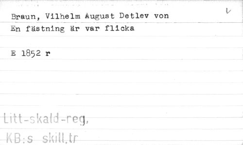 //// Braun, Vilhelm August Detlev von En fästning är var flicka //// E 1852 r //// itt-skald-req, //// KB: s ////