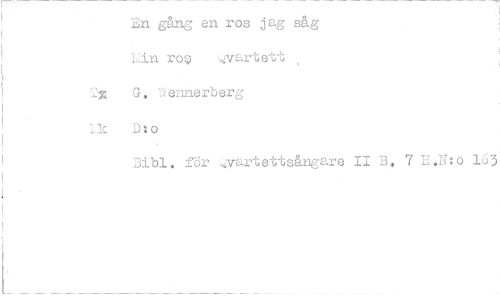 //// En gång en ros jag såg //// in ro? vart ett //// Tx G, U'ennerberg //// lek DI() //// Bibi, för Kvartettsångare II B, 7 H.N:o 163 ////