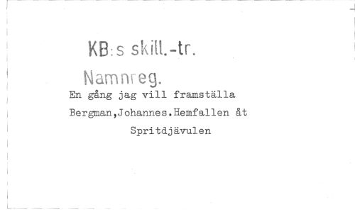 //// KB:s still.-tr. //// Namn eg. //// En gång jag vill framställa Bergman,Johannes.Hemfallen åt Spritdjävulen ////