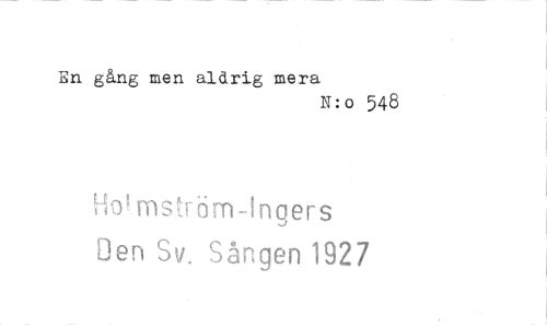 //// En gång men aldrig mera //// N:o 548 //// dna mstväm-Ingers //// Den Sv. Sången 1927 ////