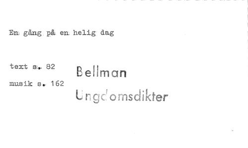 //// Eni gång på en. helig dag //// text ms. 82 Bellman //// musik s. 162 //// Lr o visd i kter ////