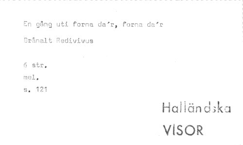 //// En gång uti forna da'r, forna da'r Drånalt Redivivus //// 6 str, mei. //// s. 121 //// Hal ländiku //// VISOR ////