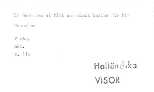 //// En hamn har vi fått som skall kallas far fin Hamnvisa //// 9 str. mal. //// s. 116 //// HCIteel— //// VISOR ////