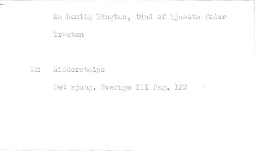 //// 121 hemlig längtan, tänd af ljusets fader Trasten //// Ik åidderstolpe //// Det sjung. Sverige III Pag. 122 ////