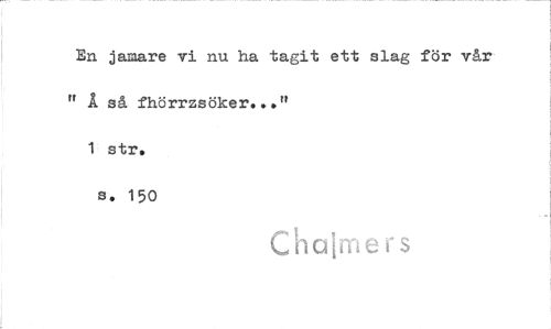 //// En jamare vi nu ha tagit ett slag för vår " Å så fhörrzsöker.. rt //// 1 str. //// s. 150 //// C h alm e s ////