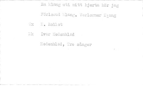 //// En klang uti mitt hjerta hör jag Förlorad klang. Verlorner Klang Txh RoIlet //// Ivar Hedenblad //// Hedenblad, 2re sånger ////