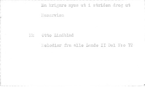 //// Bn krigare nyss ut i striden drog ut Lusarvisa //// 1,1 Otto Lindblad //// Lelodier fra alle Landa II Del N:o 72 ////