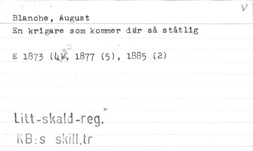 //// Blanche, August //// En krigare som kommer där så ståtlig //// E 1873 (14,)6 1877 (5), 1885 (2) //// litt-skatd-reg, //// KB:s sULtr- ////