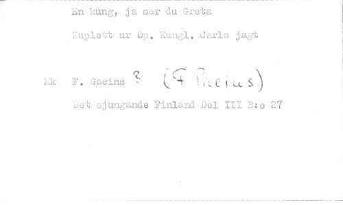 //// n kung, ja ser du Greta //// Kuplett ur Up. Kungl. Carls jaet //// Lk F. Gaeins c. 1 .C1 55) //// Det sjungande Finland Del III B:o 27 ////