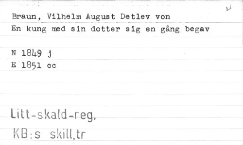 //// Braun, Vilhelm August Detlev von //// En kung med sin dotter sig en gång begav //// N 1849 //// E 1851 cc //// litt-skald-reg, //// KB:s skillötr ////