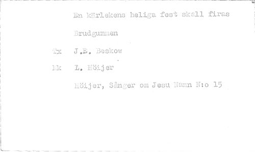 //// En Mrlekens heliga fest skall firas Brudgummen //// Tx J.E. Beskow //// ik 1. höijer //// höijer, Sån2:er om Jesu Namn Nto 15 //// Ii ////
