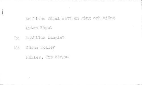//// in liten fågel satt en gång och sjöng Liten Fågel. //// 2x Mathilda Lenglet //// Lk Göran. Löner //// kblier, Tre sånger ////