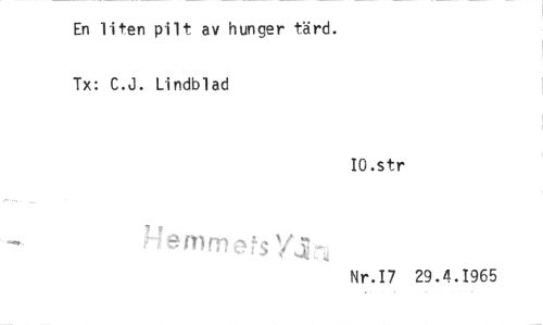 //// En liten pilt av hunger tärd. //// Tx: C.J. Lindblad //// IO.str //// f IM //// Nr.I7 29.4.1965 ////