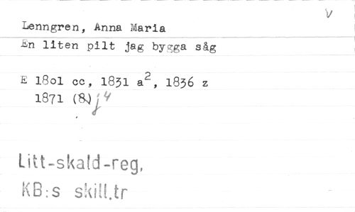 //// Lenngren, Anna Maria //// En liten pilt jag bygga såg //// E 1801 cc, 1831 a2, 1836 z 1871 Njy? //// lift-skald-reg, //// KB:s s ilLtr ////