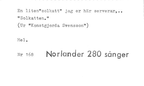 //// En liten"solkatt" jag er här serverar,.. "Solkatten." //// (Ur "Konstgjorda Svensson") //// Mel. //// Nr 168 Norlander 280 sånger ////