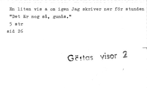//// En liten vis a om igen Jag skriver ner för stunden "Det är nog så, gunås." //// 5 str sid 26 //// G !tas visor 2 ////