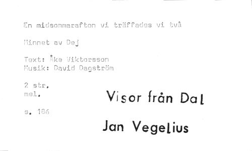 //// En midsommarafton vi träffades vi två Minnet av Dej //// Text: tke Viktorsson Musik: David Dagström //// 2 str. //// mel. Visor från Dal //// s. 18 //// Jan Vegetius ////