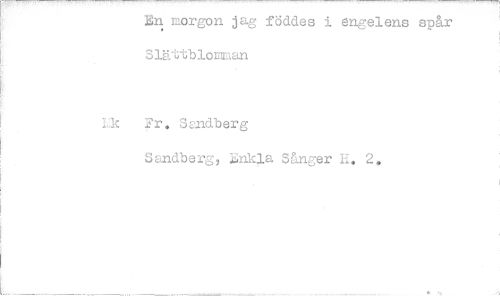 //// En morgon jag föddes i engelens spår Slä....1;tbloraraan //// dt :Jr. Sandberg //// Sundberg, Enkla Sånger H. //// • ////