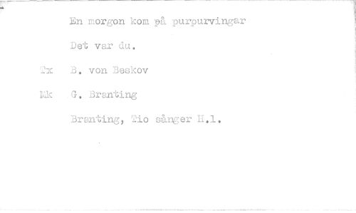//// En morgon kom på purpurvingar 1 //// Det var du. //// 2x B. von T3eskov //// kk G. Branting //// Branting, Tio sånger 11.1. ////