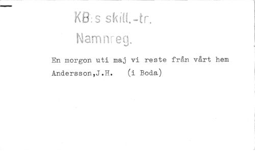 //// KB:s //// Namweg. //// En morgon uti maj vi reste från vårt hem Andersson,J.H. (i Boda) ////
