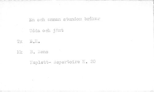 //// n och annan stundom bråkar Udda och jämt //// .u. //// Ek B, lens //// Kuplett- tepertoire E, 20 ////