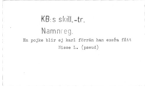 //// KB:s ski(1.-tr. //// Namnreg. //// En pojke blir ej karl förrän han exelu fått //// Nisse L. (pseud) ////