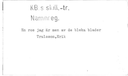 //// KEL s s iii.-tr. //// N am nr eg. //// En ros jag är men av de bleka blader Trulsson,Erik ////