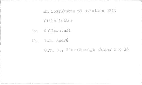 //// n rosenknopp på stjelken satt Olika lotter //// Tx Gellerstedt //// 1.-k 1.13. Andr6 //// C.v. S., Flerstämniga sånger Nto 14 //// 1 ////