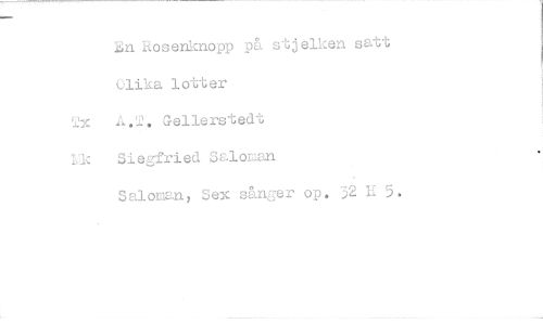 //// n Rosenknopp på stjelken satt olika lotter //// 2x Gellerstedt //// Lic Siegfried ,alomen //// Salornan, Sex sånger op. 52 H 5. ////