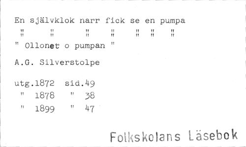 //// En självklok narr fick se en pumpa //// Tt tt It n It !t tt //// It It TT tt tt It //// " 011onet o pumpan " A.G. Silverstolpe //// utg.1872 sid.k9 //// " 1878 38 //// 1899 !! 47 //// Fol skolans Läsebok ////