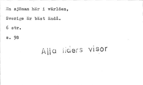 //// En sjöman här i världen, Sverige är bäst ändå. //// 6 str. //// s. 98 //// S visor ////