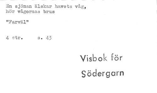 //// En sjöman älskar havets våg, hör vågornas brus //// "Farväl" //// 4 str, s. 43 //// Visbok för //// Södergarn ////