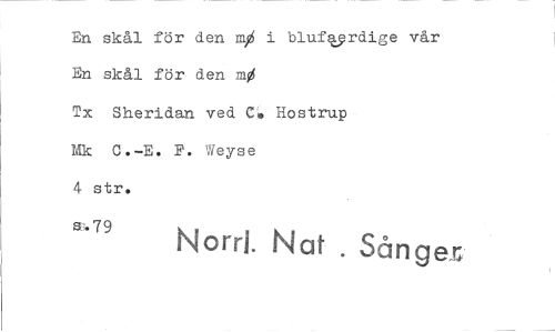 //// En skål för den 4 i blufurdige vår En skål för den m0 //// Tx Sheridan ved C. Hostrup //// Mk 0.-E. F. Weyse 4 str. //// s479 //// Nord. N t . Sången ////