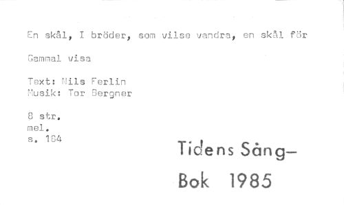 //// En skål, I bröder, som vilse vandra, en skål för Gammal visa //// Text: Nils Ferlin Musik: Tor Bergner //// 8 str. mel. //// s. 184 Tidens Säng— //// Bok 1985 ////
