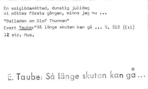 //// En solglödamättad, dunstig julidag //// vi möttes första gången, minns jag nu ••• //// "Balladen om Olof Thunman" //// Evert Taube:"Så länge skutan kan gå ... S. 212 (E:1) str. Mus. - //// 0 //// Taube: Så länge skutan kan ga ////