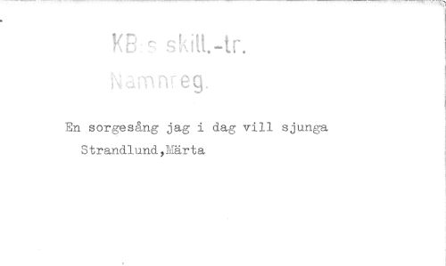 //// KF: e, skitt.-tr. //// En sorgesång jag i dag vill sjunga Strandlund ,Mär ta ////
